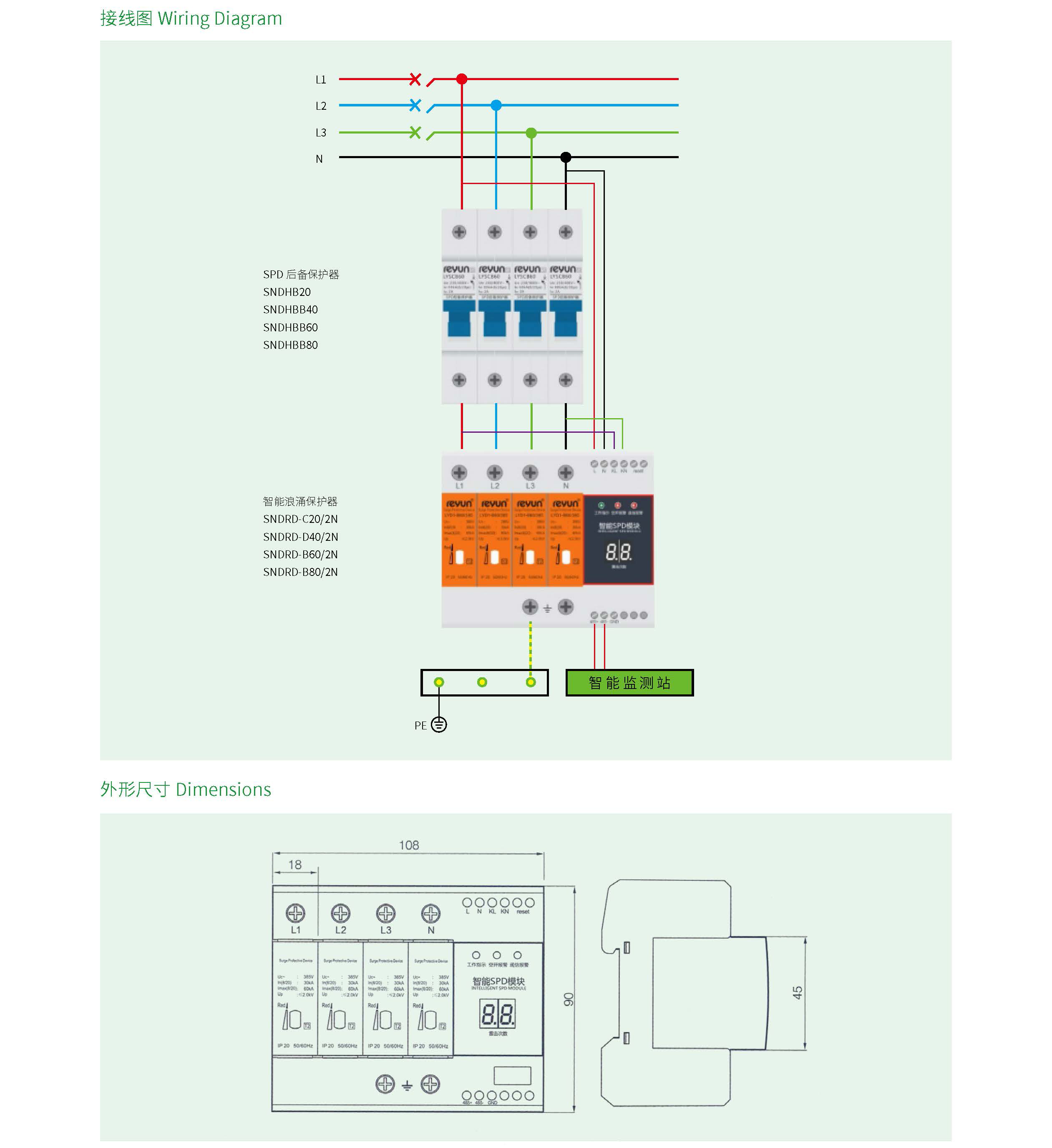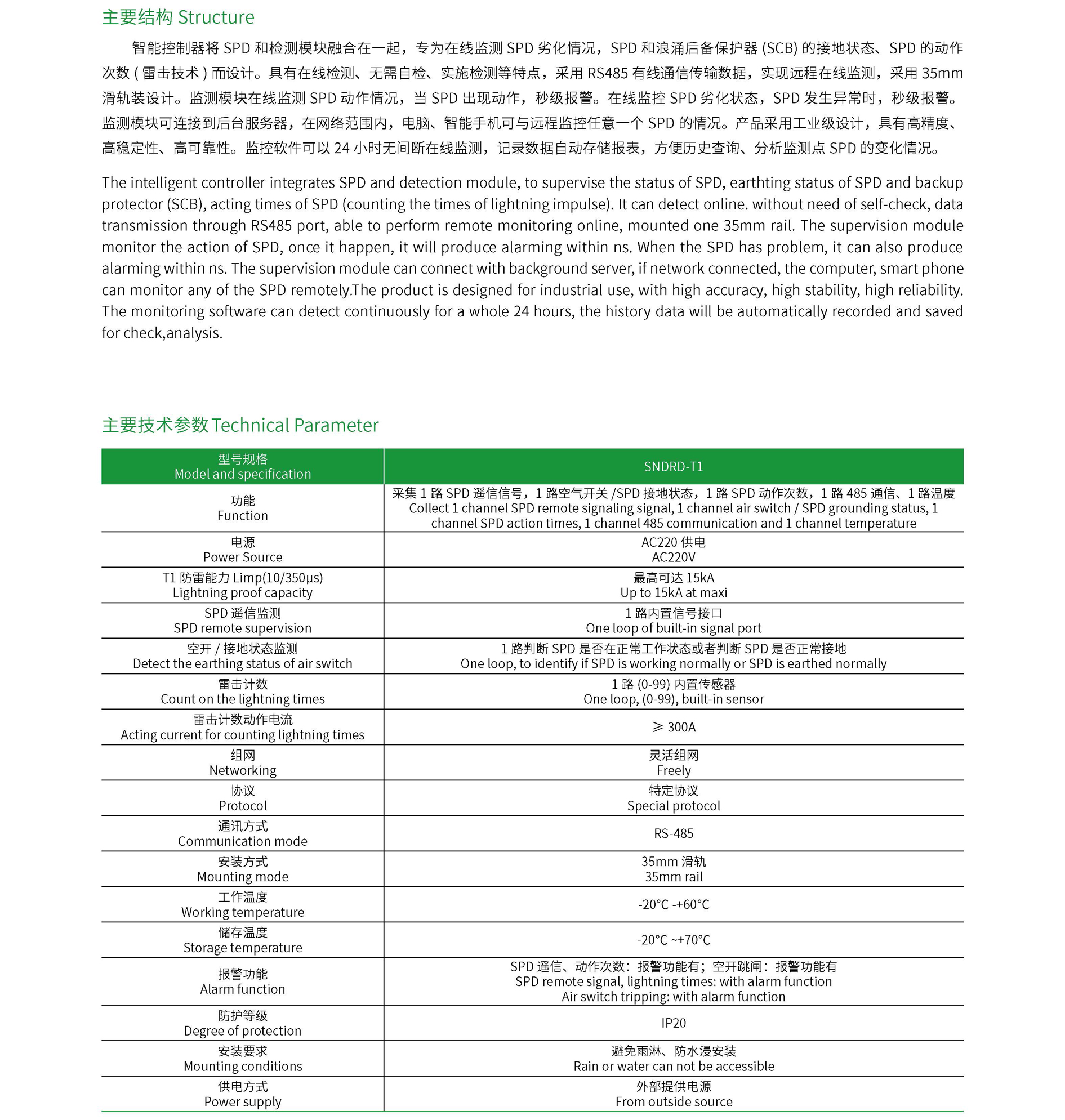 SNDRD-T1 系列智能浪涌保护器( 智能SPD) 是我公司专门针对“雷电防护在线监测”研发的一款高新技术产品。智能SPD 适用于电