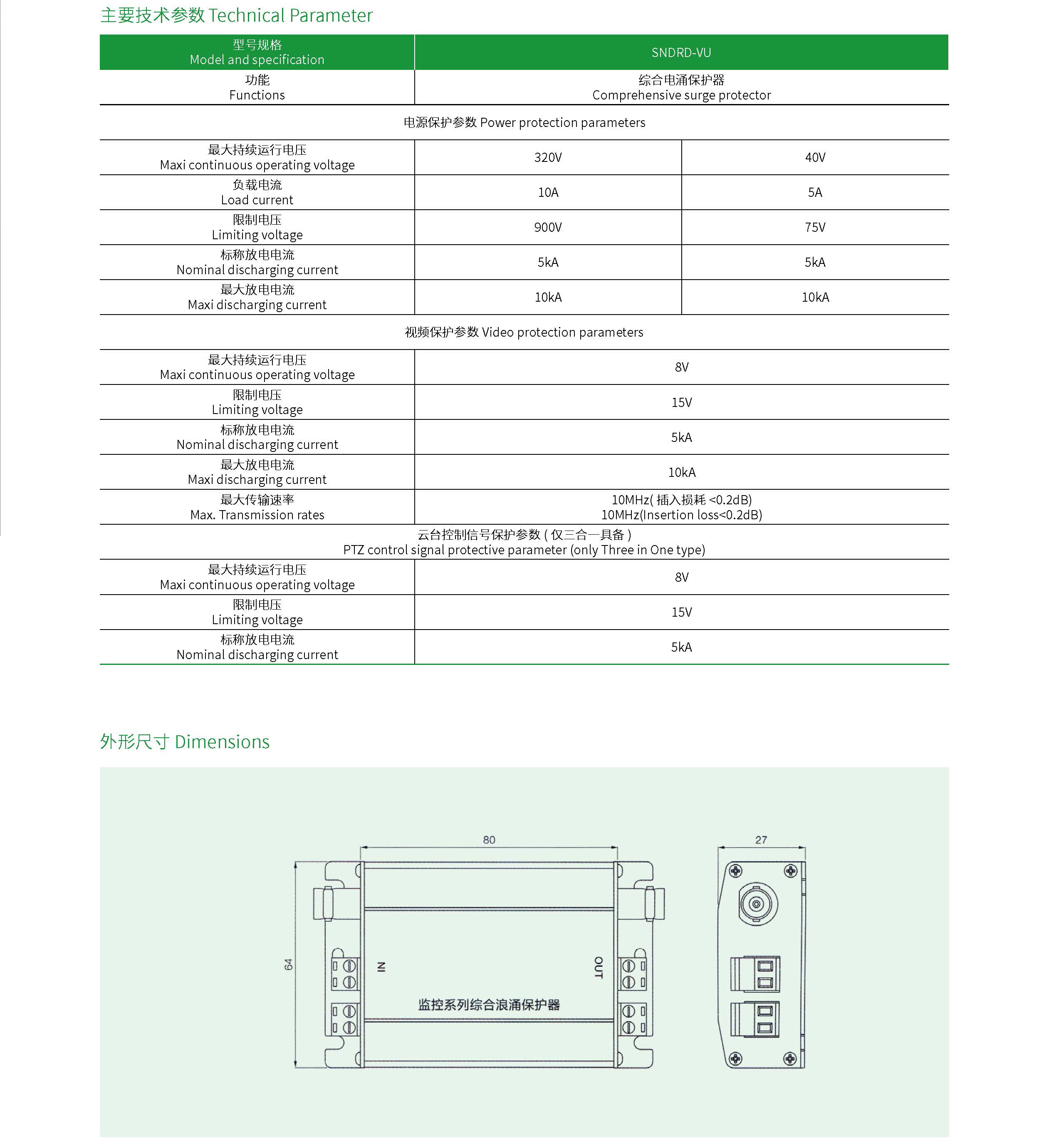SNDRD-VZ 系列控制信号浪涌保护器主要用于保护以二线制和三线制方式连接的变送器、开关、频率信号、通信设备、热电阻、热电