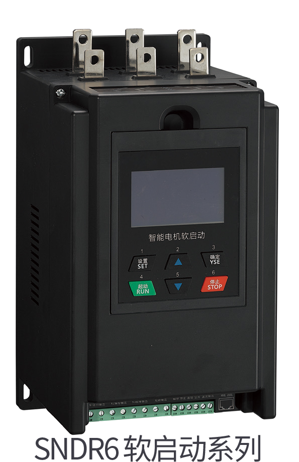 SNDR6 一□智能软起动控制器以先进的微处理器为核心, 应用先进的软件设计方法和最新的硬件技术, 采用晶闸管相移技术,实现
