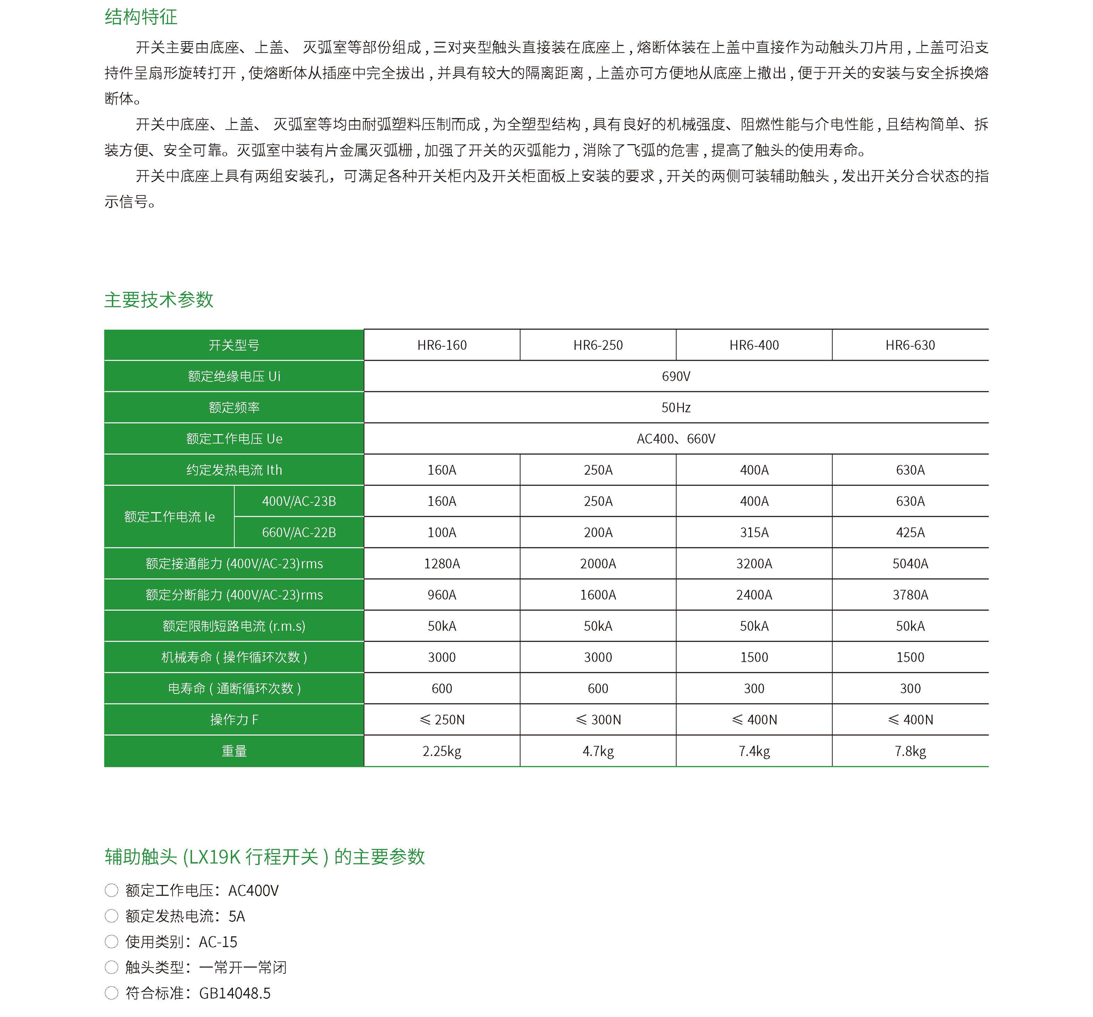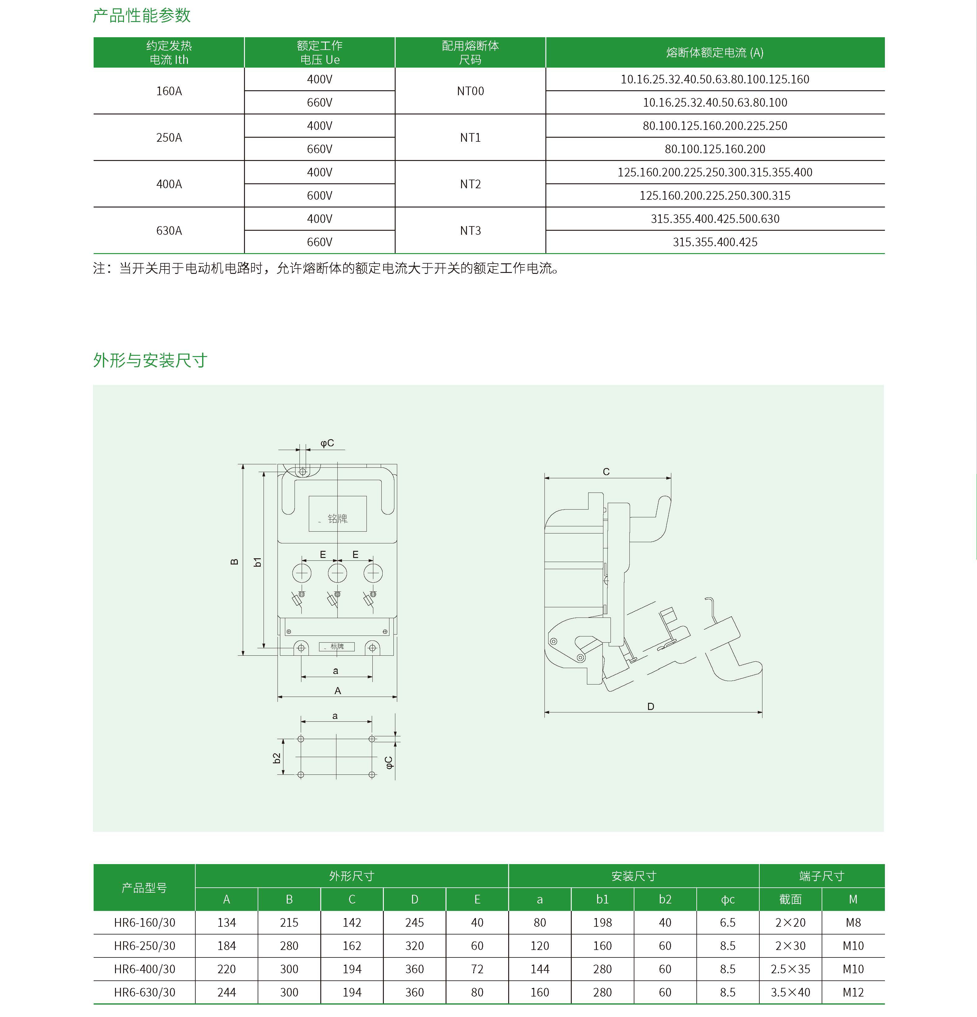 HR6 系列熔断器式隔离开关( 以下简称开关),是我公司参照德国AEG 公司产品而设计的,适用于交流50Hz、额定电压至660V、隔