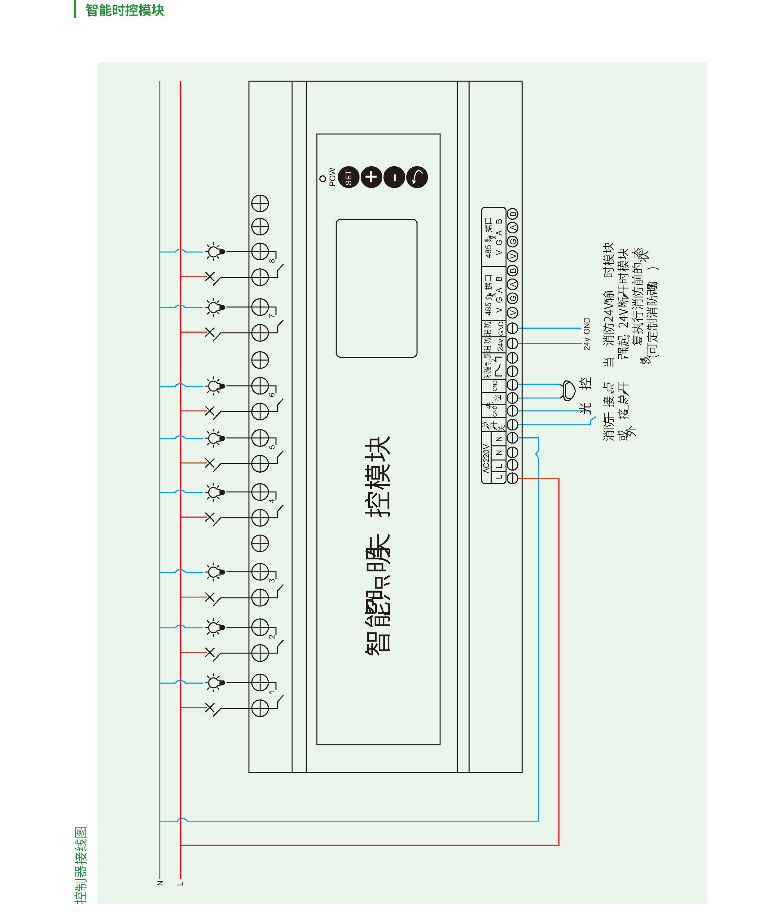 具有定时/ 经纬时控/ 光控功能/ 消防功能,液晶显示屏,人机界面,RS485 接口, 标准Modbus 协议,星期模式/ 每路4 组时间段设置,