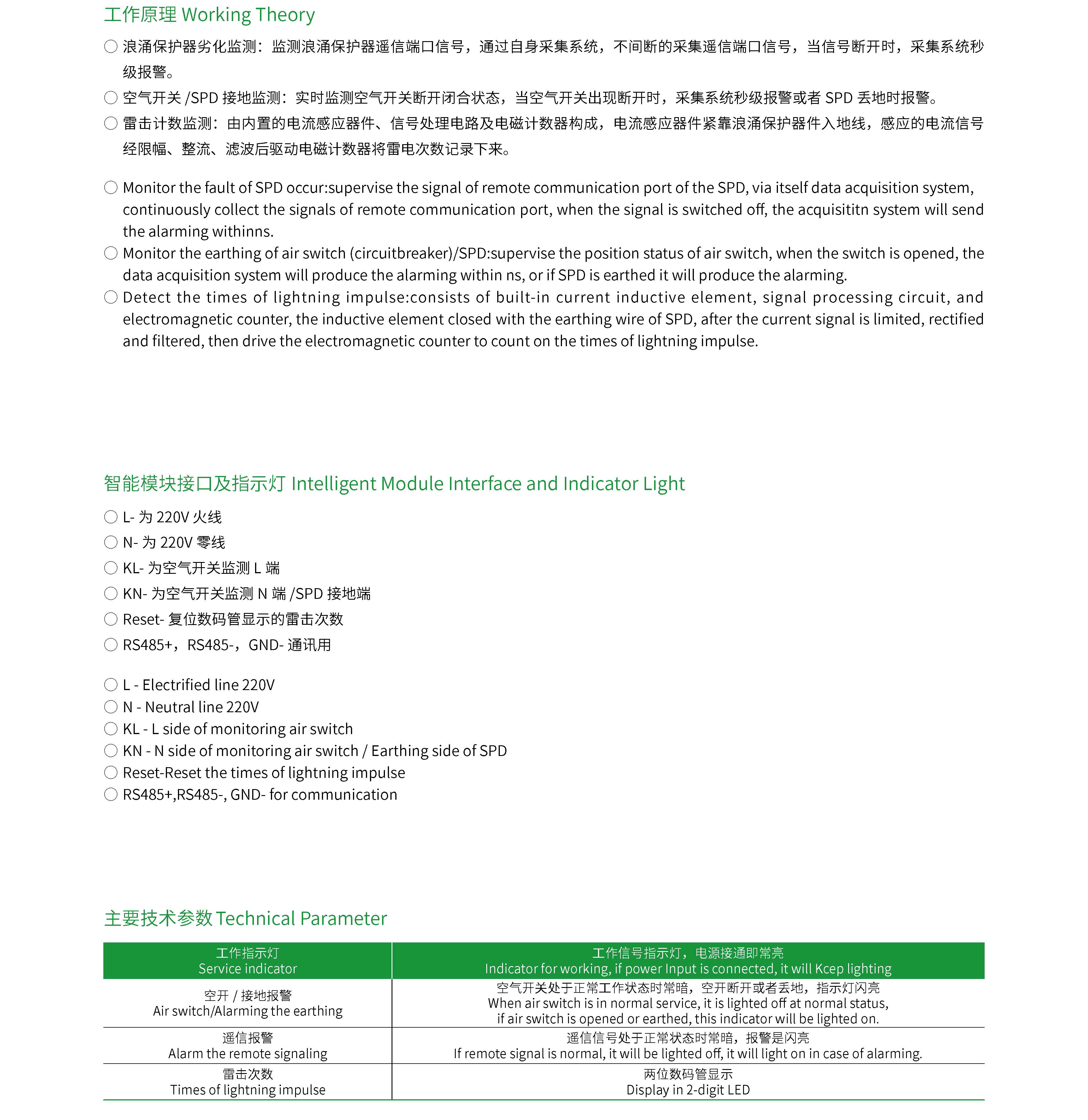 力、铁路运输、机场码头、石油化工、新能源、通信、环保水利等行业的配电系统,实现对用户和对浪涌保护器(SPD) 工作状态的实时监