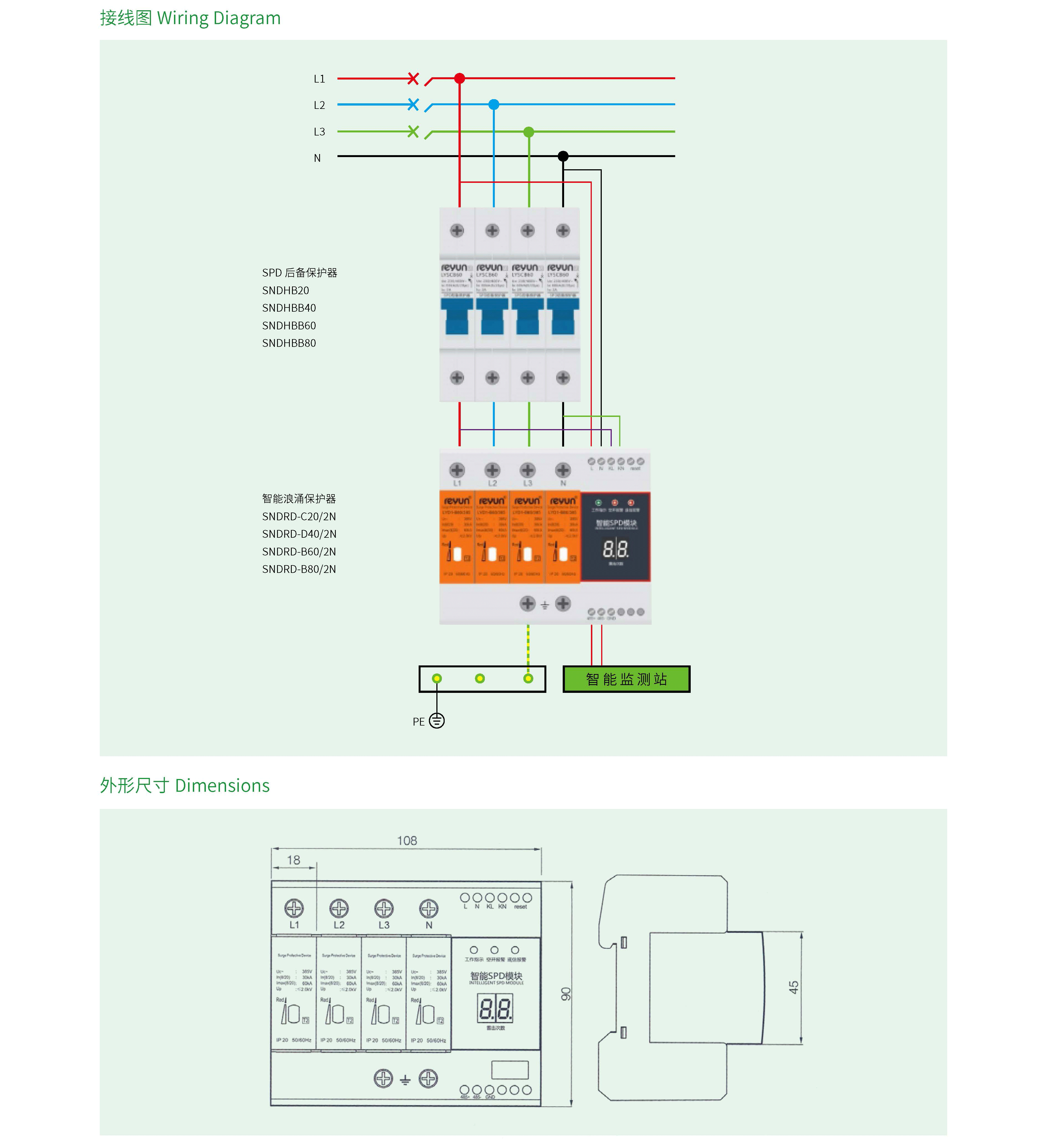 SNDRD-T2 系列智能浪涌保护器( 智能SPD) 是我公司专门针对“雷电防护在线监测”研发的一款高新技术产品。智能SPD 适用于电