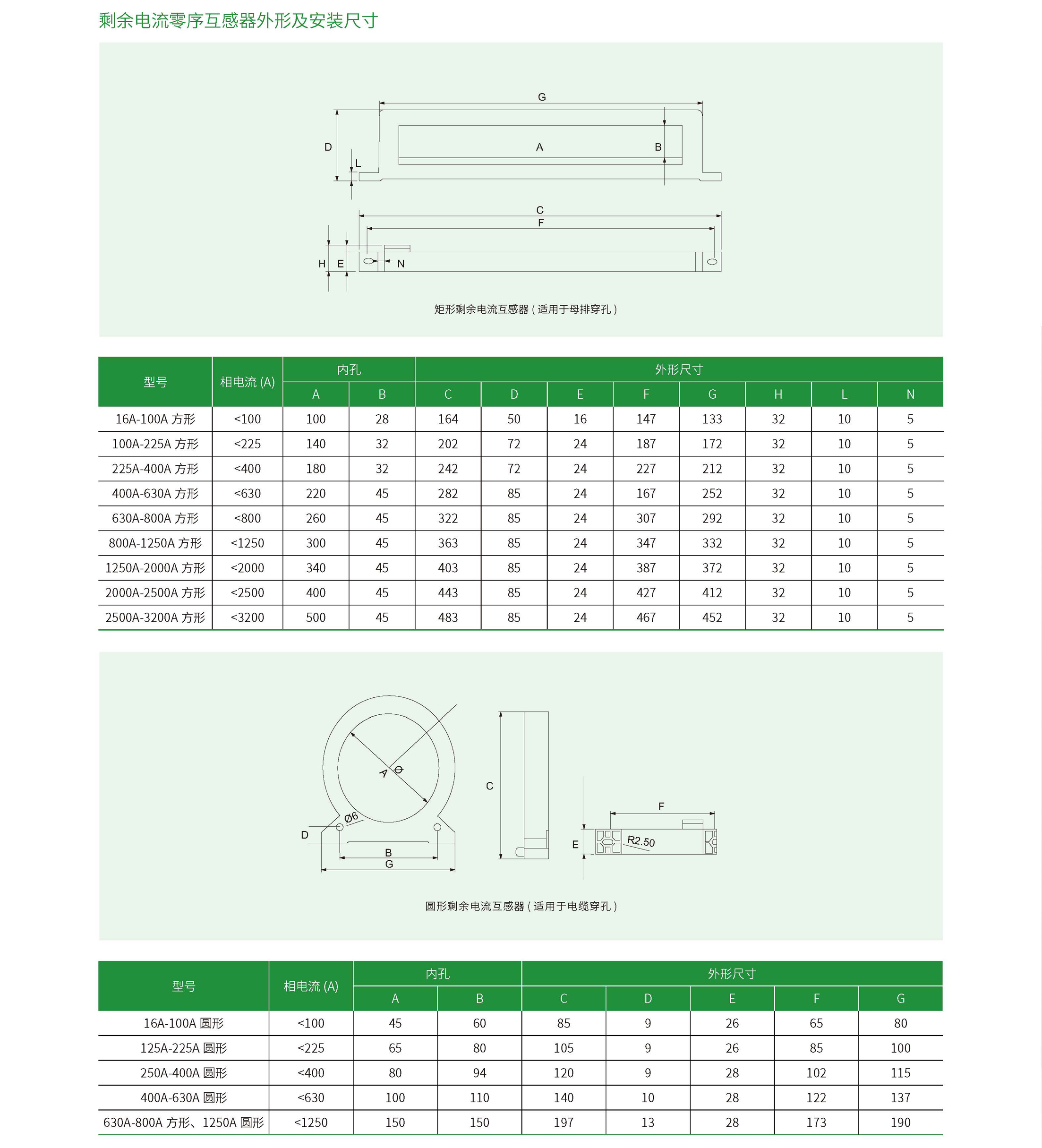 SNDHY500/800 配套系列零序互感器,专为采集零序电流信号而设计。零序电流为mA 级,且必须用于穿芯方式,对平衡特性和线性