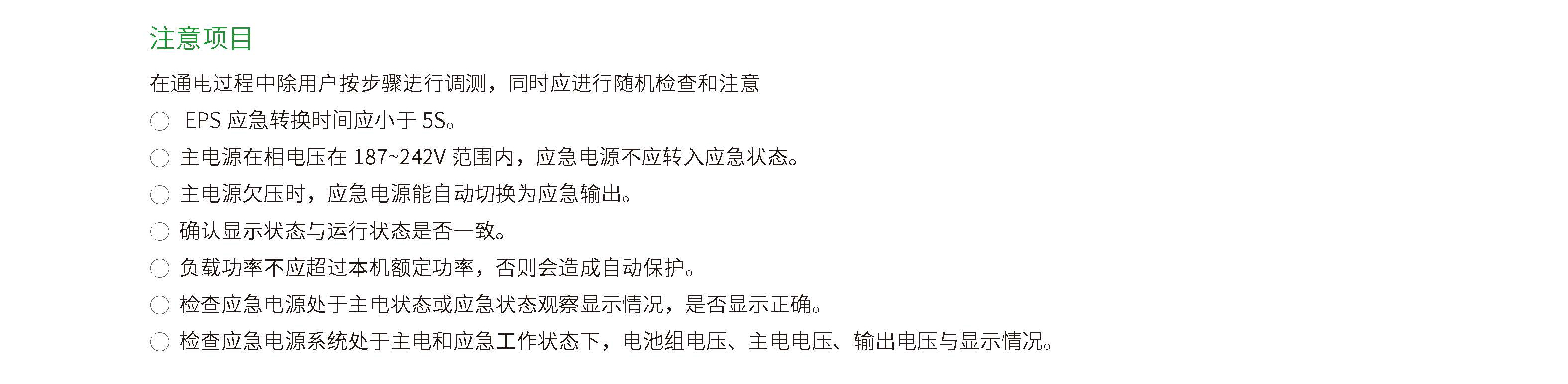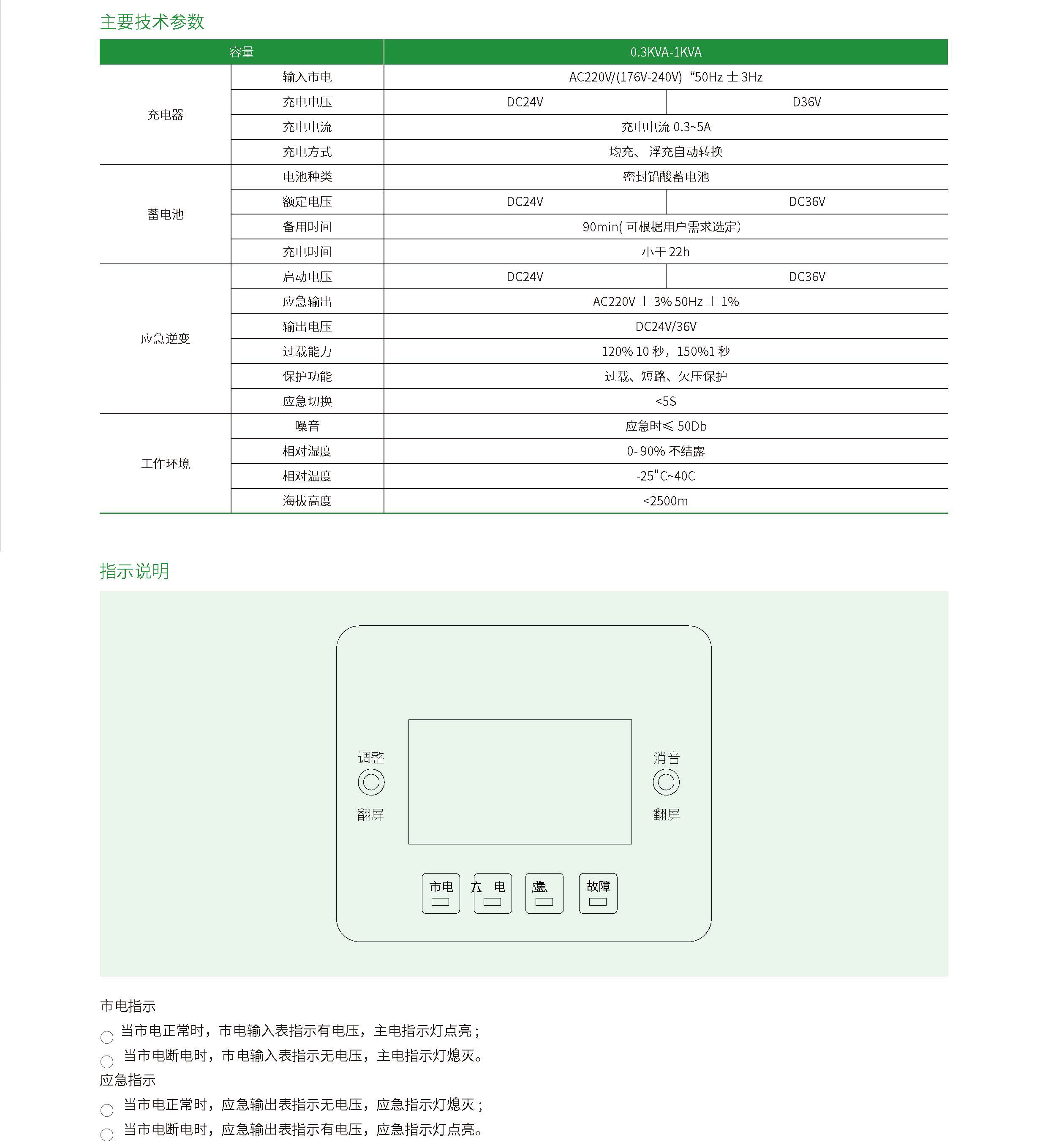 池组充电。当电网停电或电网电压低于25% 或高于25% 额定电压时,本设备将立即切换到电池供电输出电源,由电池组备用电输出至照