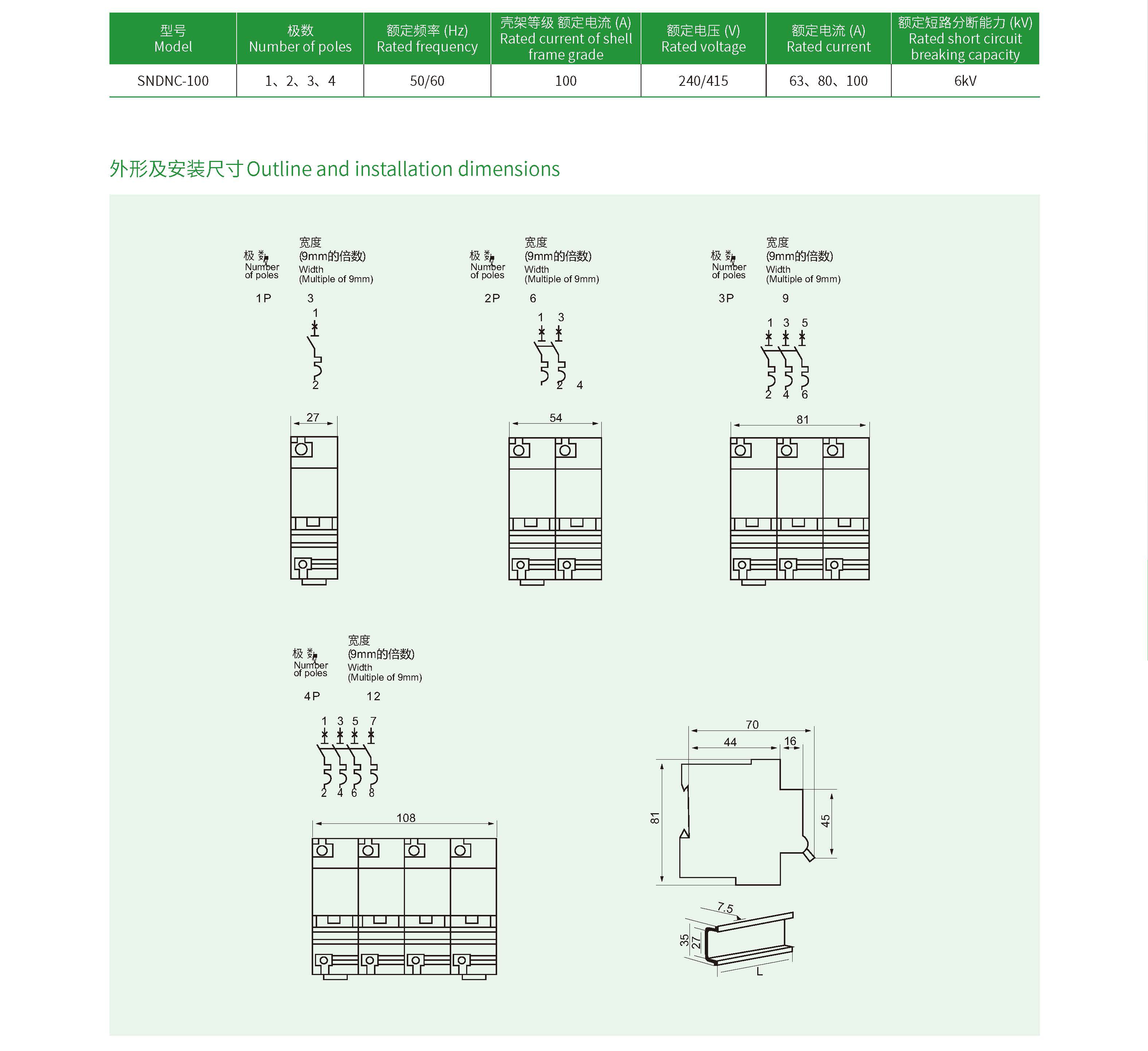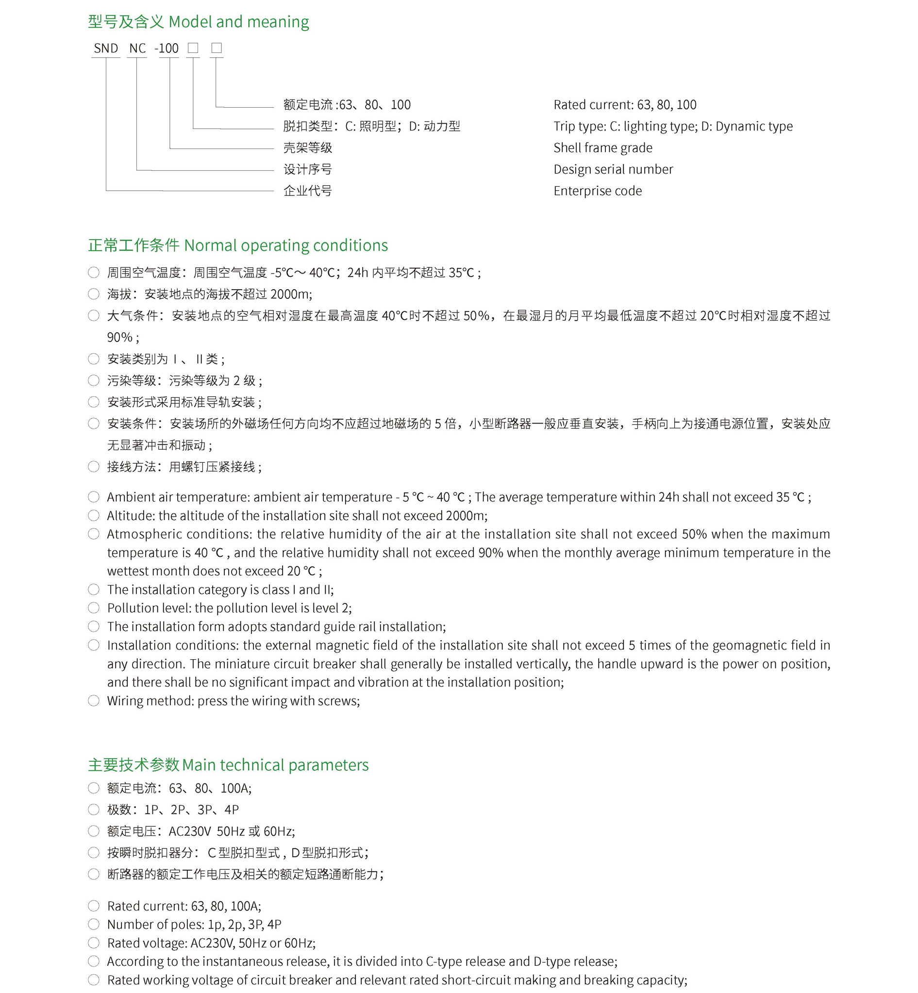 SNDDPNLE 漏电断路器适用于频率50HZ,额定电压230V,额定电流从6A 至32A 的电路中,作为触电保护和设备漏电保护之用,并且有过载,